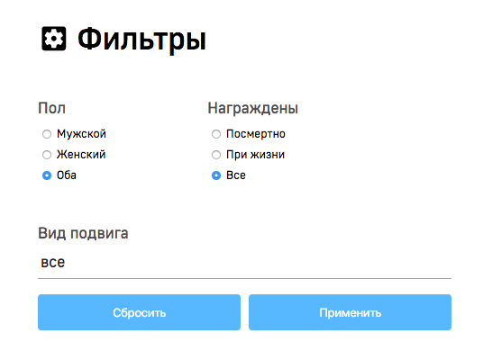 Предусмотрена фильтрация данных о героях по несколькоим параметрам.